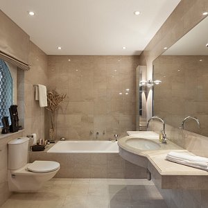 Потолки — матовые натяжные, со встроенными системами освещения либо обычные под покраску.