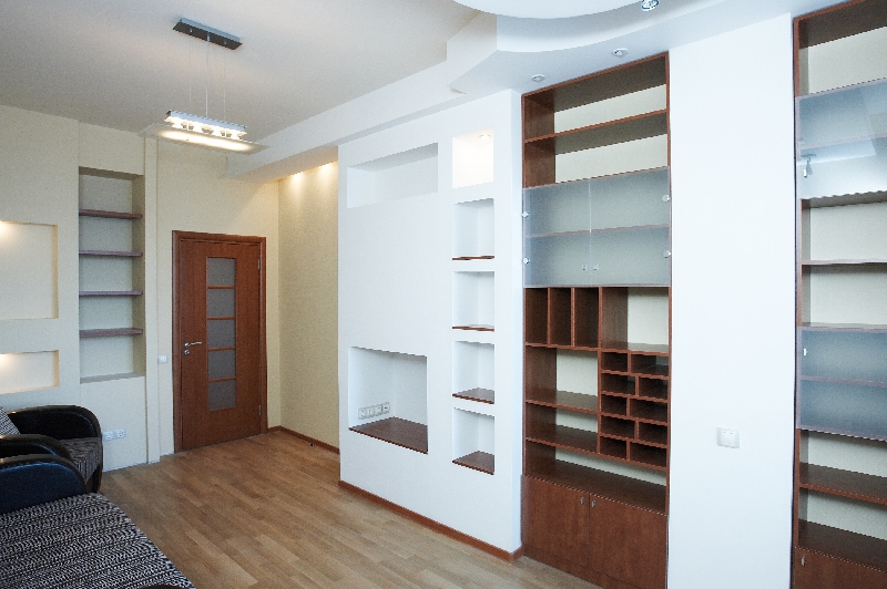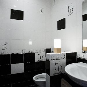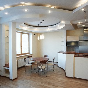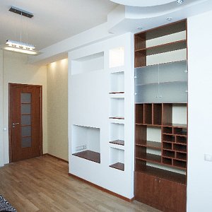 При отделке квартиры использовались следующие материалы: керамогранит (Ceracassa, Испания), влагостойкий ламинат высокого класса прочности Hessen Floor Classic Ясень (Германия), облицовочная плитка Serenissima Alabastro (Италия). Освещение центральное в комбинации с точечной подсветкой.