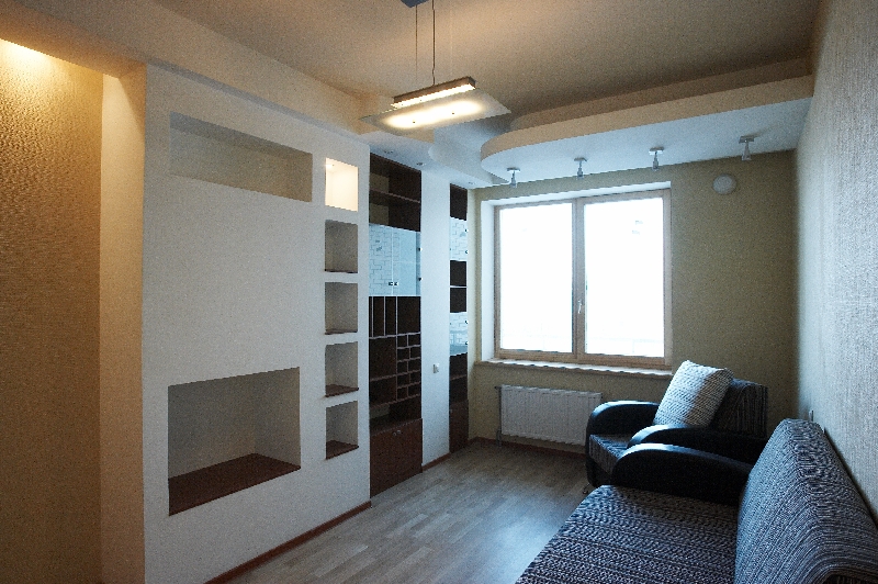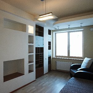 В работу поступила квартира свободной планировки, где были выделены большая кухня-гостиная и спальня.