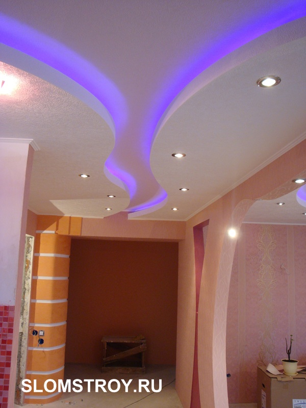 Высота потолков в квартире предоставляет массу возможностей для воплощения в жизнь смелых дизайнерских идей: многоуровневый вариант с подсветкой и точечным освещением не кажется громоздким, и в сочетании с оригинальными межкомнатными перегородками придает квартире индивидуальность.