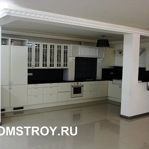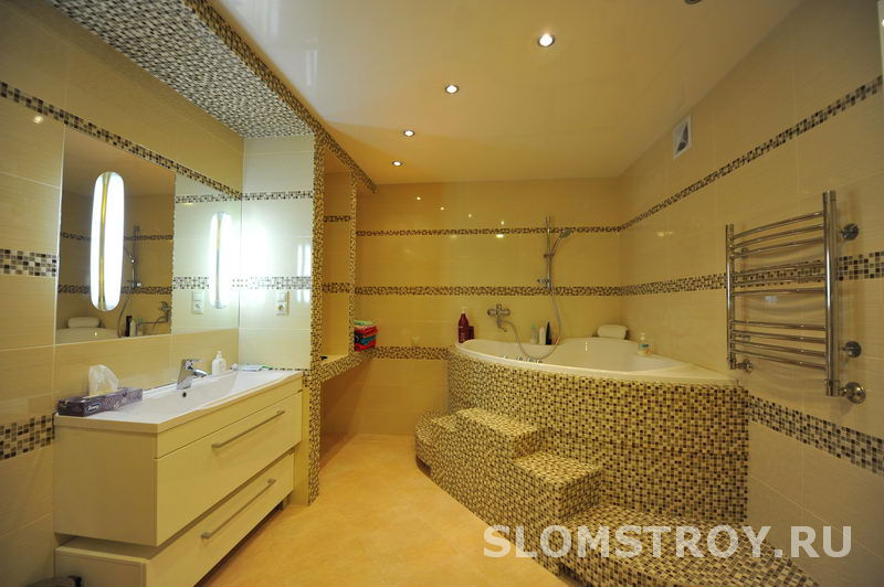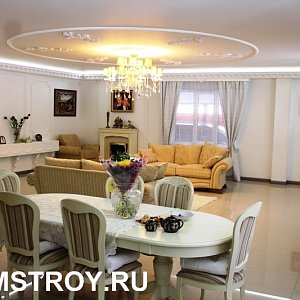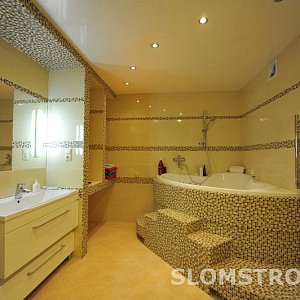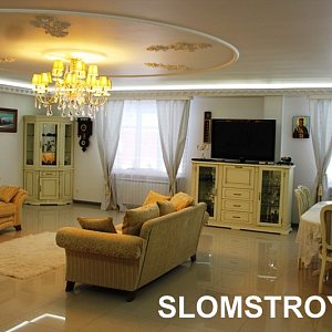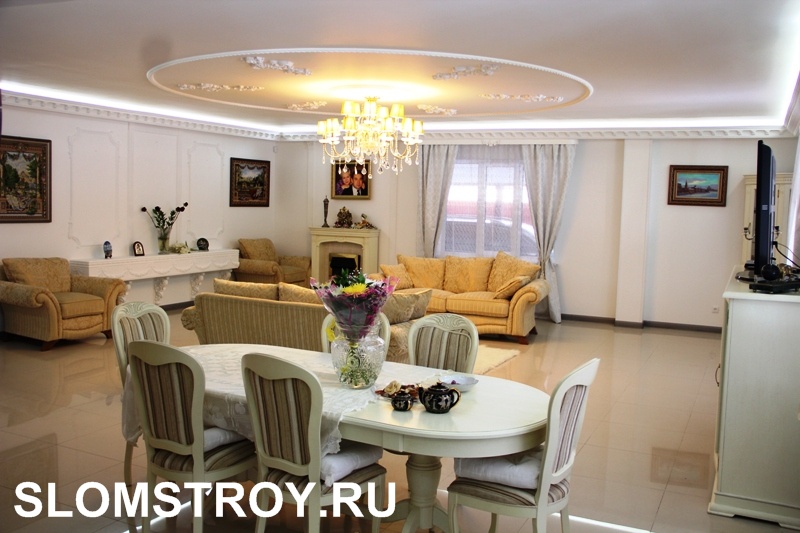 К вопросу о ремонте заказчик подошёл с позиции сочетания разных стилей. На первом этаже дома преобладает европейская классика (комната отдыха, гостиная, обеденная зона). Для остальных помещений первого этажа, включая бассейн, и для второго этажа за основу взят модернизм, встречаются элементы классицизма.